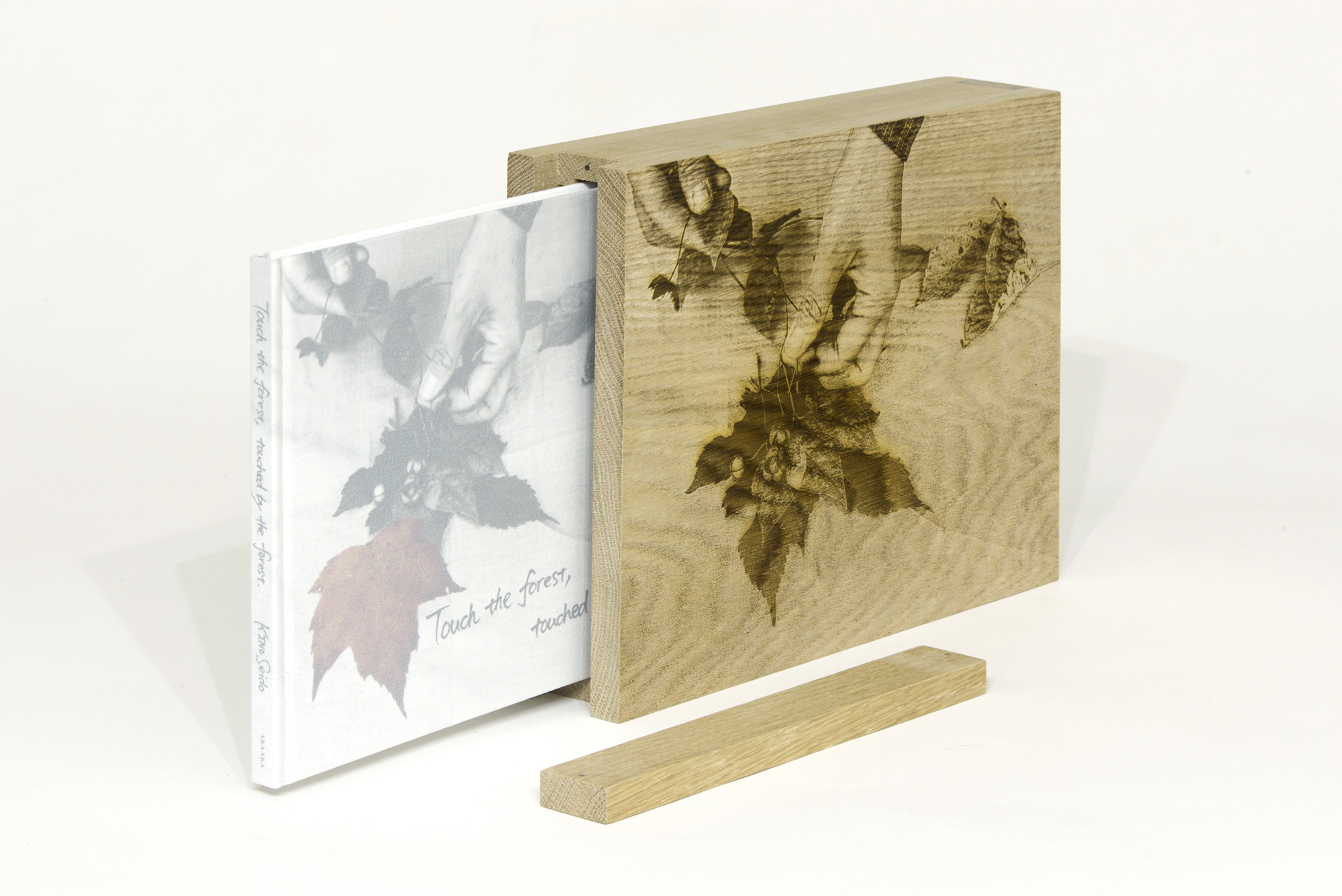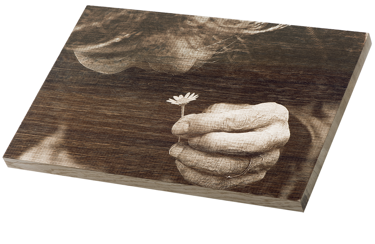 木の板にレーザー光線を使って焼き焦がすことで写真に仕上げています。来場者の方々が木の温もりと香りを楽しめるよう、触れられる写真展にしました。